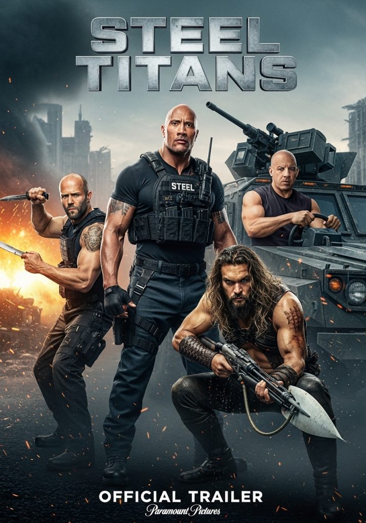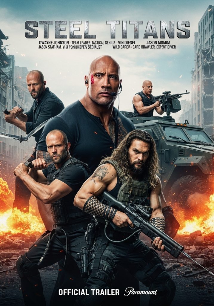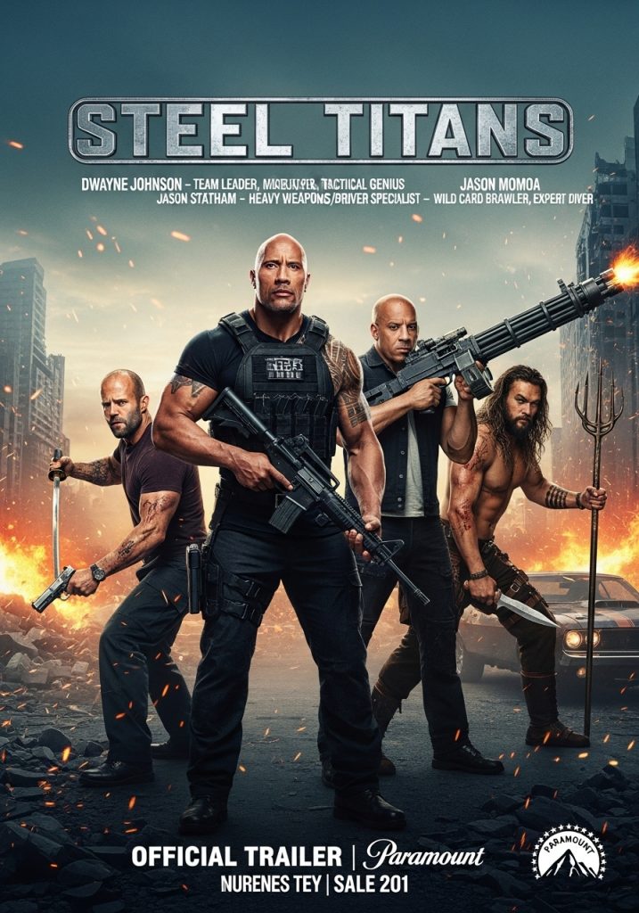 Hollywood is set to ignite the big screen with Steel Titans, an adrenaline-fueled action epic bringing together four of the biggest names in the genre: Dwayne Johnson, Jason Statham, Vin Diesel, and Jason Momoa. This powerhouse ensemble headlines a gripping story set in a dystopian future dominated by ruthless mega-corporations. Betrayed and left for dead, four ex-special forces soldiers reunite to wage war on the corrupt system that controls the world. Combining brutal hand-to-hand combat with futuristic weaponry and jaw-dropping stunts, Steel Titans promises to redefine action cinema.